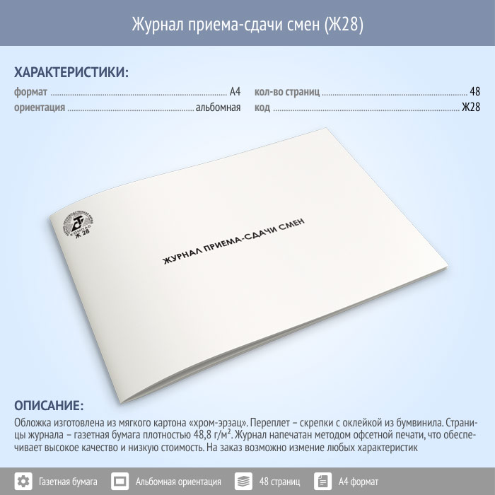 Журнал приема-сдачи смен (48 стр., Ж28) в Краснодаре купить