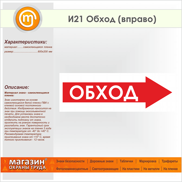 Знак «Обход (вправо)», И21 (пленка, 600х200 мм)