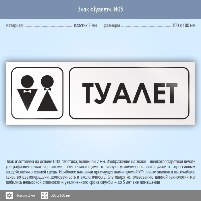 Знак «Туалет», И05 (пластик, 300х100 мм) в Краснодаре купить