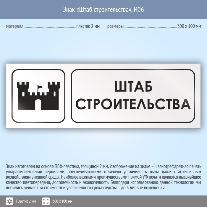 Знак «Штаб строительства», И06 (пластик, 300х100 мм) в Краснодаре купить