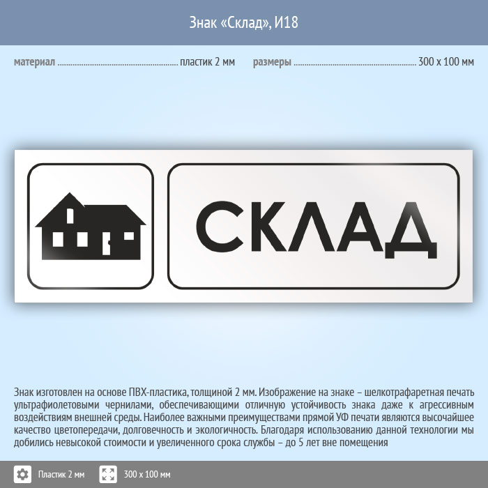 Знак «Склад», И18 (пластик, 300х100 мм) в Краснодаре купить
