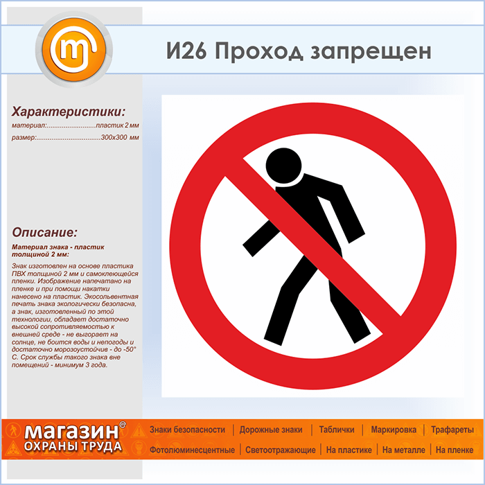 Знак «Проход запрещен», И26 (пластик, 300х300 мм) в Краснодаре купить