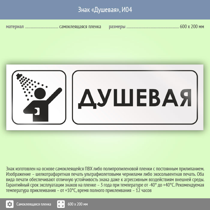 Знак «Душевая», И04 (пленка, 600х200 мм) в Краснодаре купить