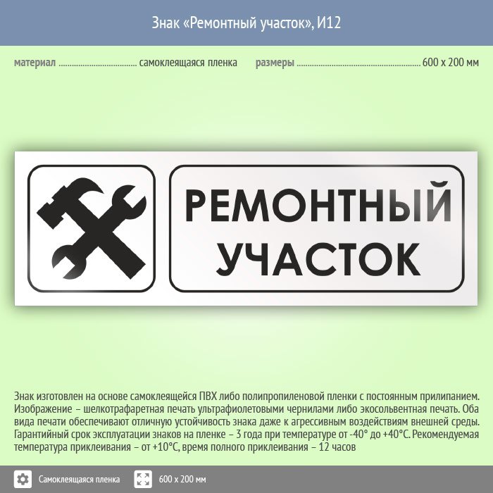Знак «Ремонтный участок», И12 (пленка, 600х200 мм) в Краснодаре купить