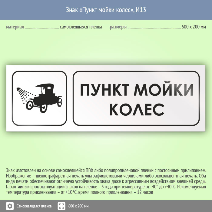 Знак «Пункт мойки колес», И13 (пленка, 600х200 мм) в Краснодаре купить