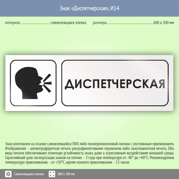 Знак «Диспетчерская», И14 (пленка, 600х200 мм) в Краснодаре купить