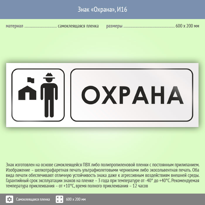 Знак «Охрана», И16 (пленка, 600х200 мм) в Краснодаре купить