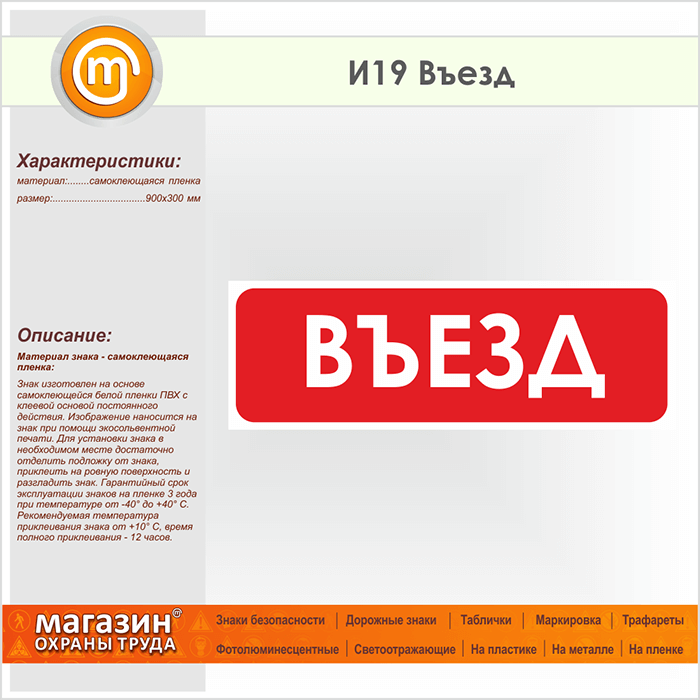 Знак «Въезд», И19 (пленка, 900х300 мм) в Краснодаре купить