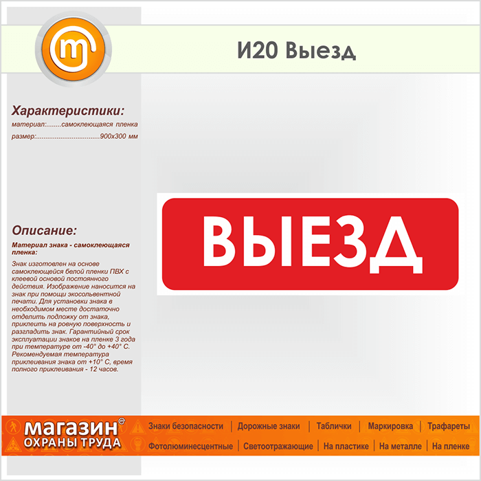 Знак «Выезд», И20 (пленка, 900х300 мм) в Краснодаре купить