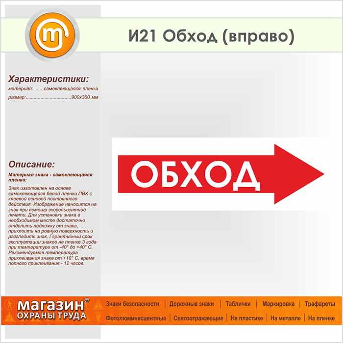 Знак «Обход (вправо)», И21 (пленка, 900х300 мм) в Краснодаре купить