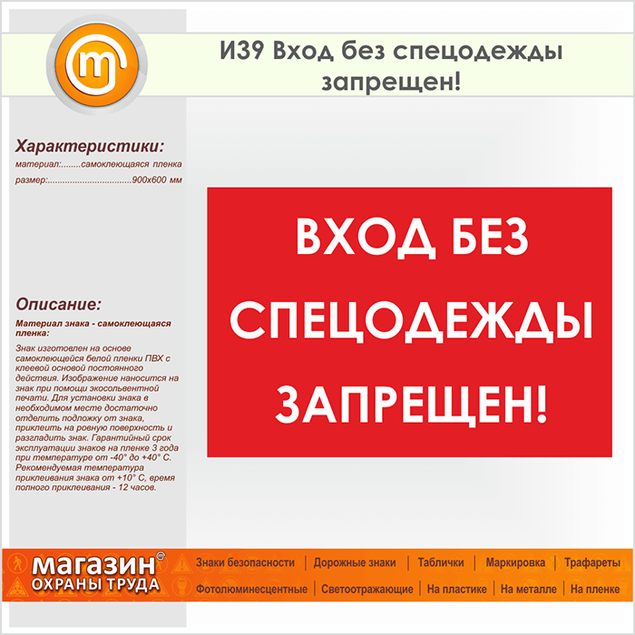 Знак «Вход без спецодежды запрещен!», И39 (пленка, 900х600 мм) в Краснодаре купить