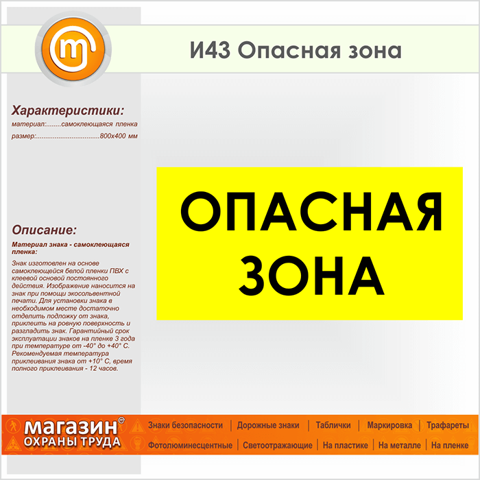 Знак «Опасная зона», И43 (пленка, 800х400 мм) в Краснодаре купить