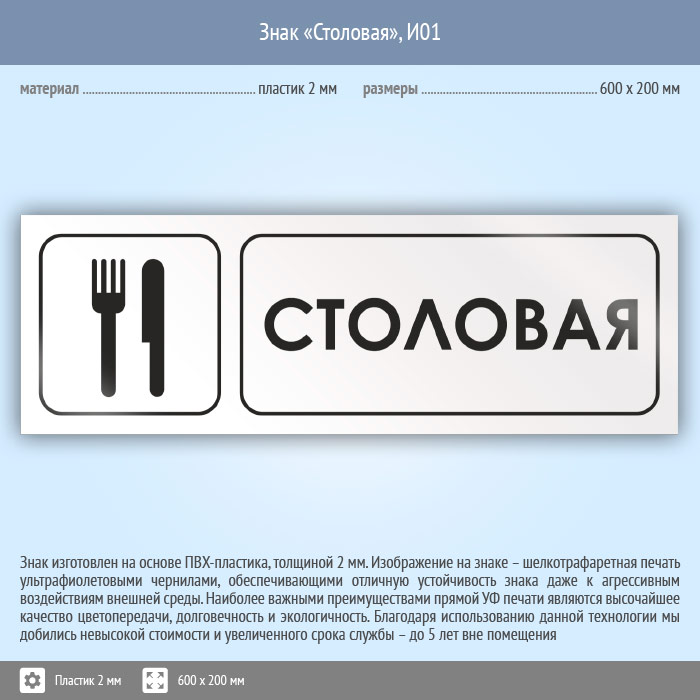 Знак «Столовая», И01 (пластик, 600х200 мм) в Краснодаре купить