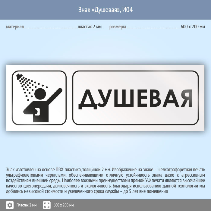 Знак «Душевая», И04 (пластик, 600х200 мм) в Краснодаре купить