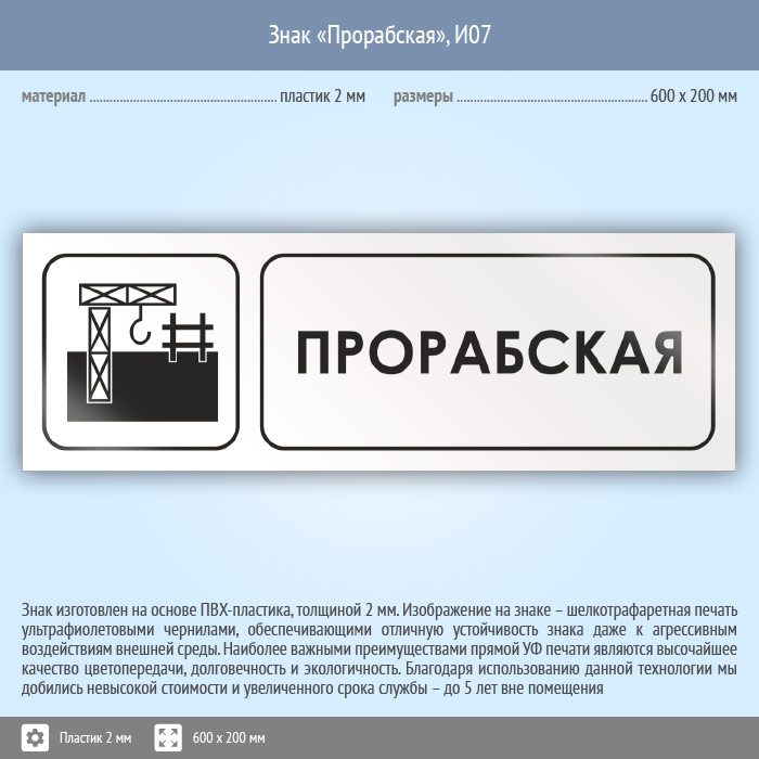 Знак «Прорабская», И07 (пластик, 600х200 мм) в Краснодаре купить