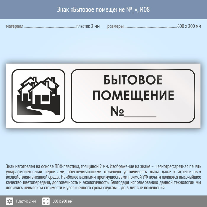 Знак «Бытовое помещение №_», И08 (пластик, 600х200 мм) в Краснодаре купить