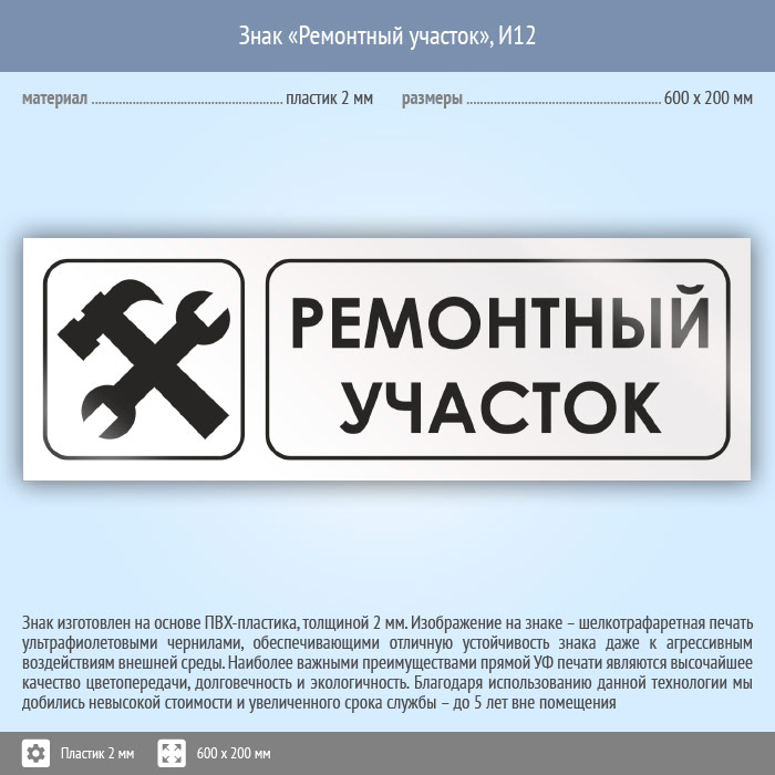 Знак «Ремонтный участок», И12 (пластик, 600х200 мм) в Краснодаре купить