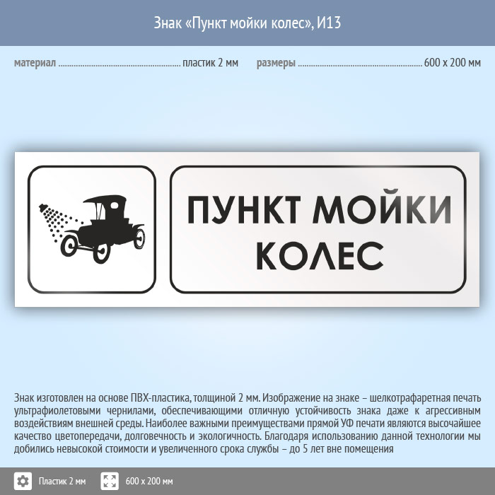 Знак «Пункт мойки колес», И13 (пластик, 600х200 мм) в Краснодаре купить