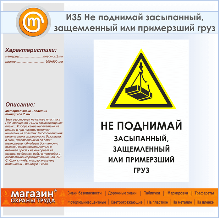 Знак «Не поднимай засыпанный, защемленный или примерзший груз», И35 (пластик, 600х900 мм) в Краснодаре купить