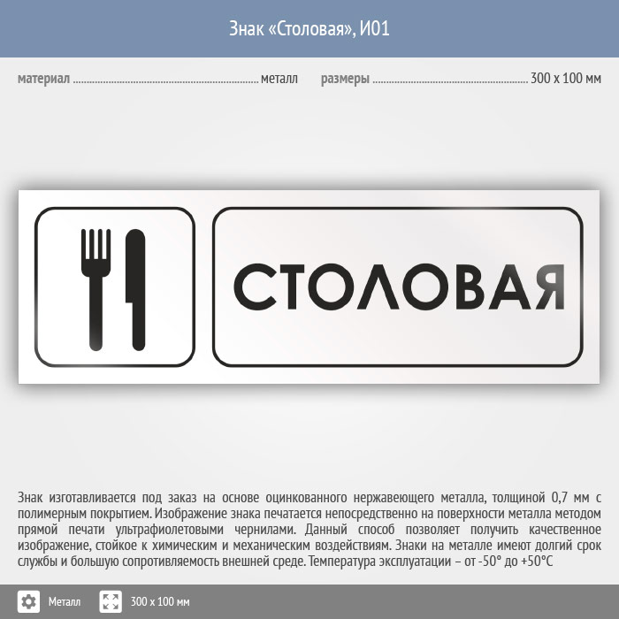 Знак «Столовая», И01 (металл, 300х100 мм) в Краснодаре купить