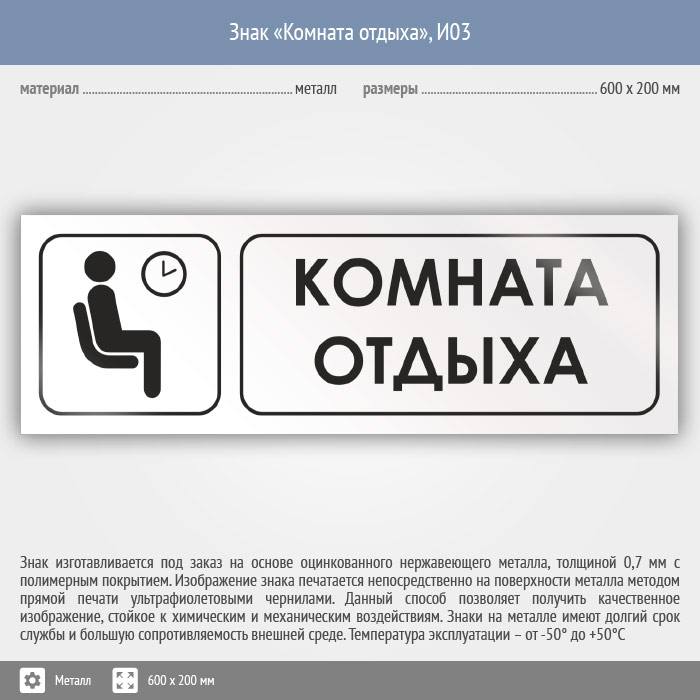 Знак «Комната отдыха», И03 (металл, 600х200 мм) в Краснодаре купить