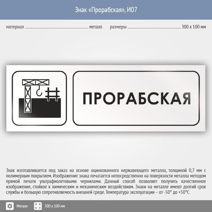 Знак «Прорабская», И07 (металл, 300х100 мм) в Краснодаре купить
