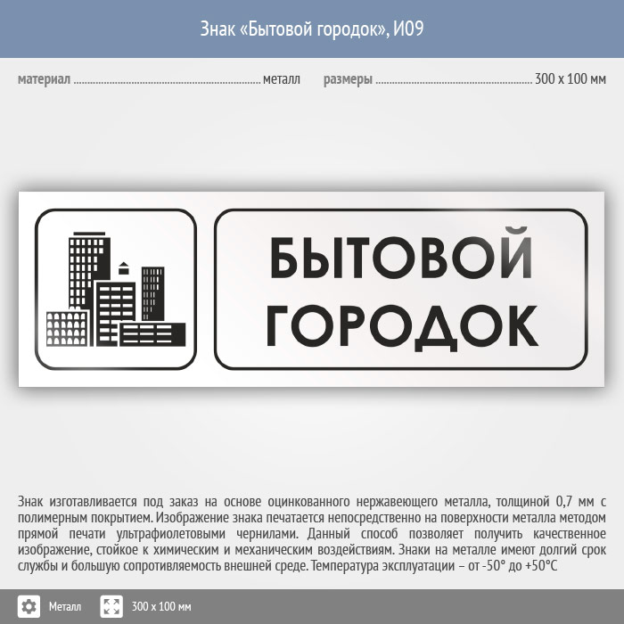 Знак «Бытовой городок», И09 (металл, 300х100 мм) в Краснодаре купить