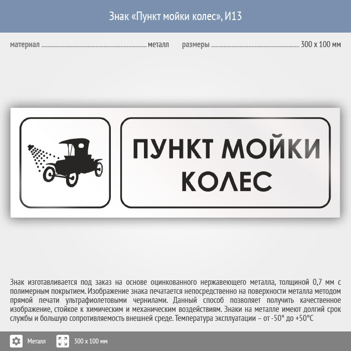 Знак «Пункт мойки колес», И13 (металл, 300х100 мм) в Краснодаре купить