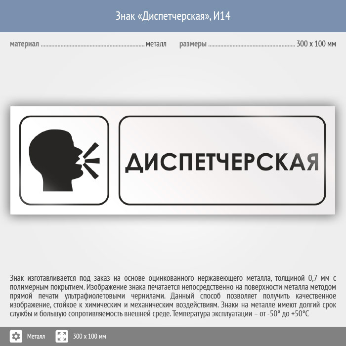 Знак «Диспетчерская», И14 (металл, 300х100 мм) в Краснодаре купить