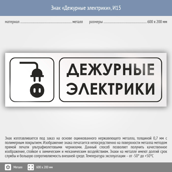 Знак «Дежурные электрики», И15 (металл, 600х200 мм) в Краснодаре купить