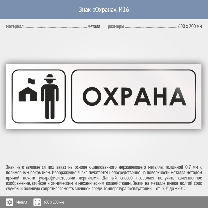 Знак «Охрана», И16 (металл, 600х200 мм) в Краснодаре купить