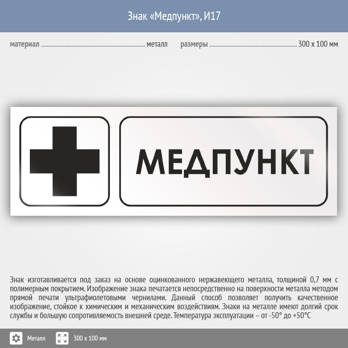 Знак «Медпункт», И17 (металл, 300х100 мм) в Краснодаре купить