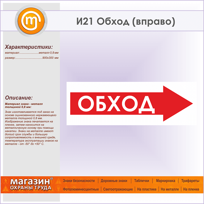 Знак «Обход (вправо)», И21 (металл, 900х300 мм) в Краснодаре купить
