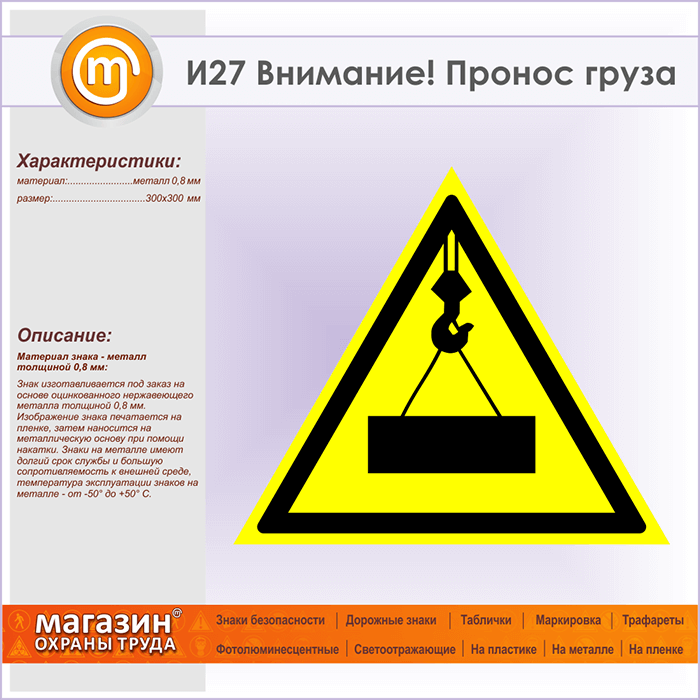 Знак «Внимание! Пронос груза», И27 (металл, сторона 300 мм) в Краснодаре купить