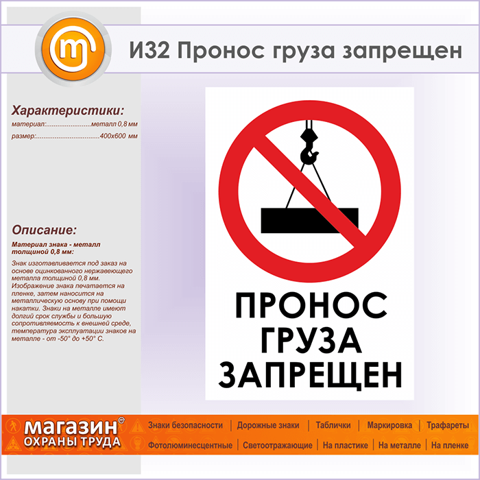 Знак «Пронос груза запрещен», И32 (металл, 400х600 мм) в Краснодаре купить