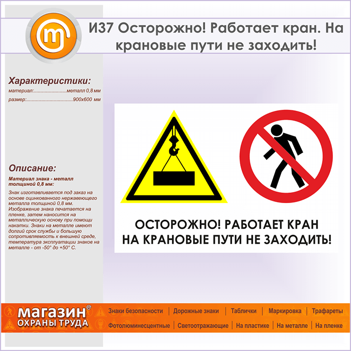 Знак «Осторожно! Работает кран. На крановые пути не заходить!», И37 (металл, 900х600 мм) в Краснодаре купить