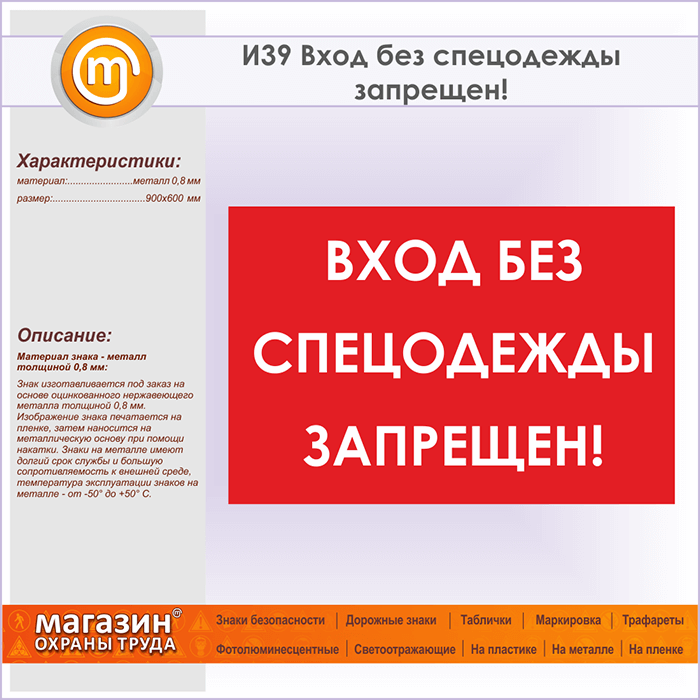 Знак «Вход без спецодежды запрещен!», И39 (металл, 900х600 мм) в Краснодаре купить