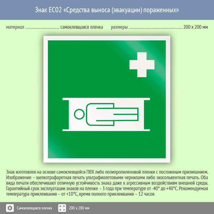 Знак EC02 «Средства выноса (эвакуации) пораженных» (пленка, 200х200 мм) в Краснодаре купить