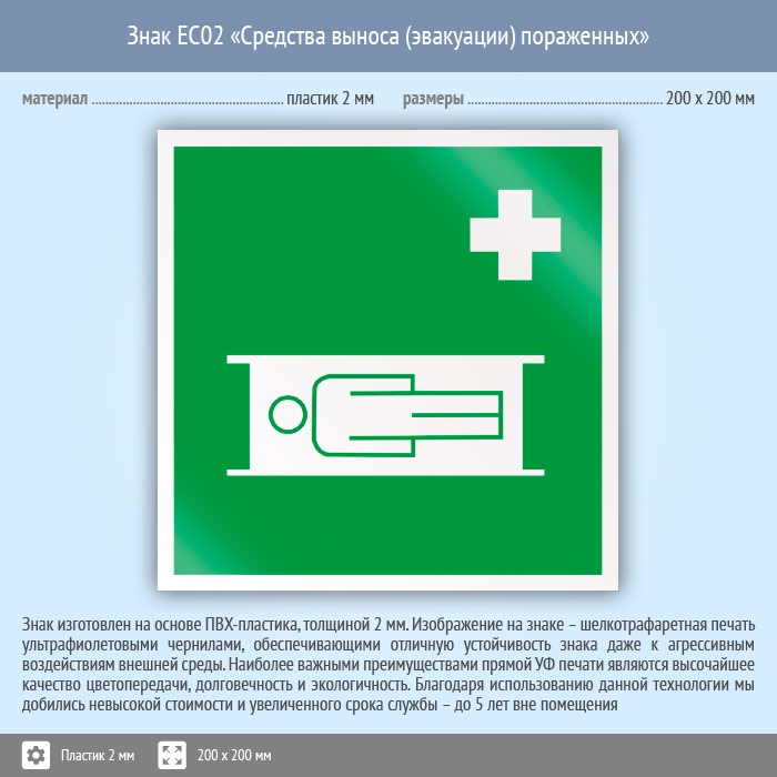 Знак EC02 «Средства выноса (эвакуации) пораженных» (пластик, 200х200 мм) в Краснодаре купить