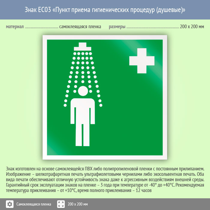 Знак EC03 «Пункт приема гигиенических процедур (душевые)» (пленка, 200х200 мм) в Краснодаре купить