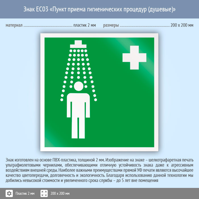 Знак EC03 «Пункт приема гигиенических процедур (душевые)» (пластик, 200х200 мм) в Краснодаре купить