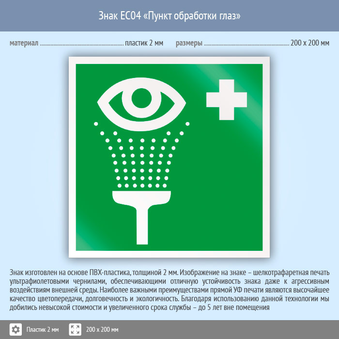 Знак EC04 «Пункт обработки глаз» (пластик, 200х200 мм) в Краснодаре купить