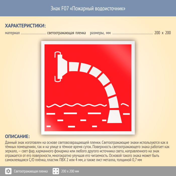 Знак F07 «Пожарный водоисточник» (светоотражающая пленка, 200х200 мм) в Краснодаре купить