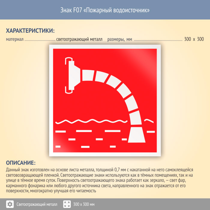 Знак F07 «Пожарный водоисточник» (светоотражающий металл, 300х300 мм) в Краснодаре купить