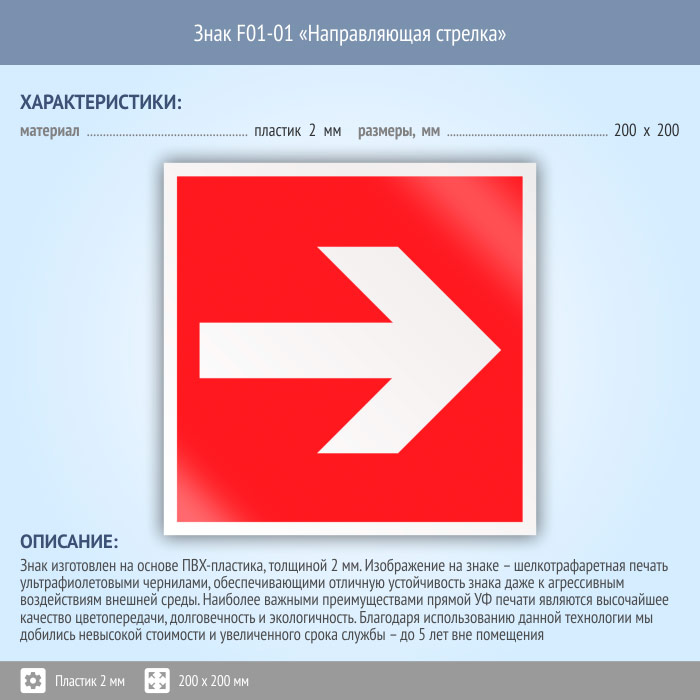 Знак F01-01 «Направляющая стрелка» (пластик, 200х200 мм) в Краснодаре купить