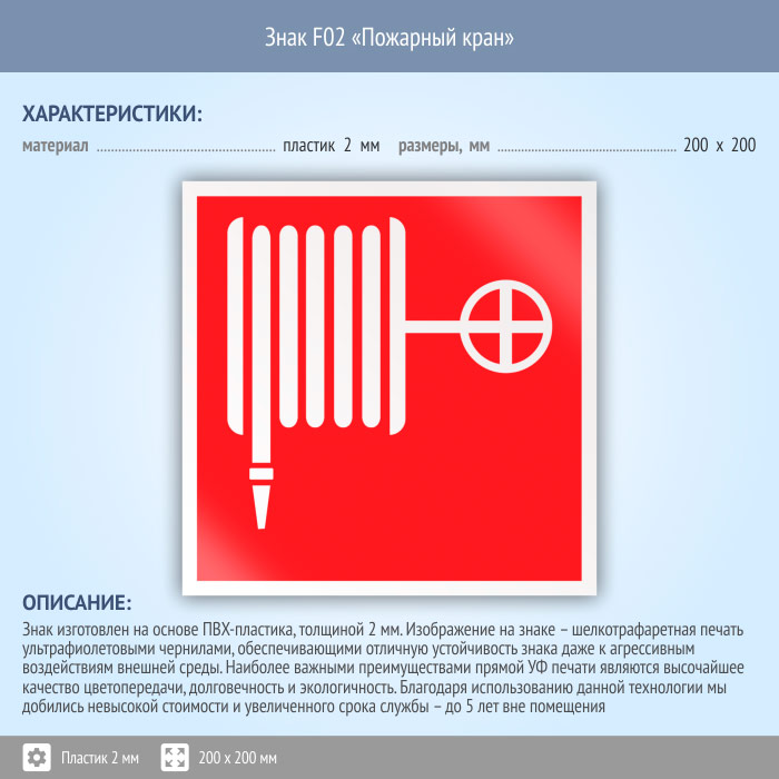 Знак F02 «Пожарный кран» (пластик, 200х200 мм) в Краснодаре купить