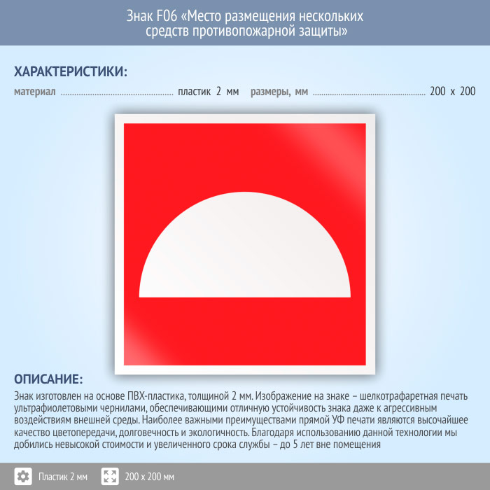 Знак F06 «Место размещения нескольких средств противопожарной защиты» (пластик, 200х200 мм) в Краснодаре купить