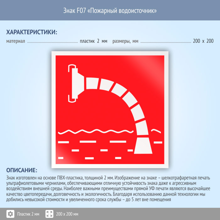 Знак F07 «Пожарный водоисточник» (пластик, 200х200 мм) в Краснодаре купить