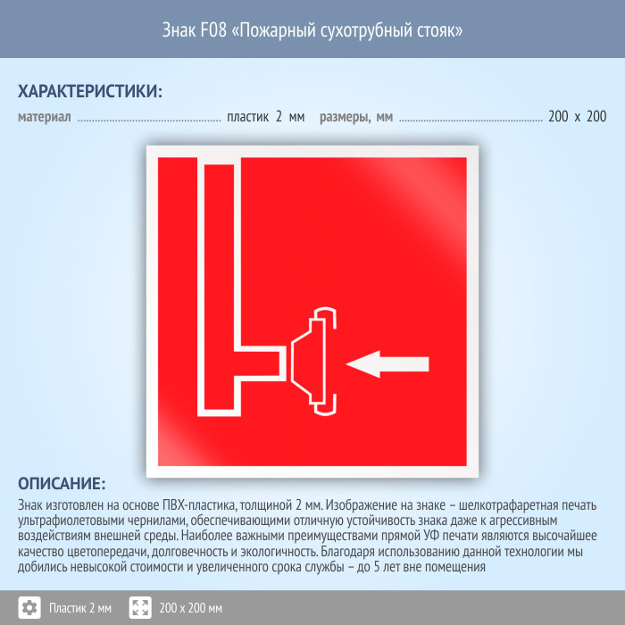 Знак F08 «Пожарный сухотрубный стояк» (пластик, 200х200 мм) в Краснодаре купить