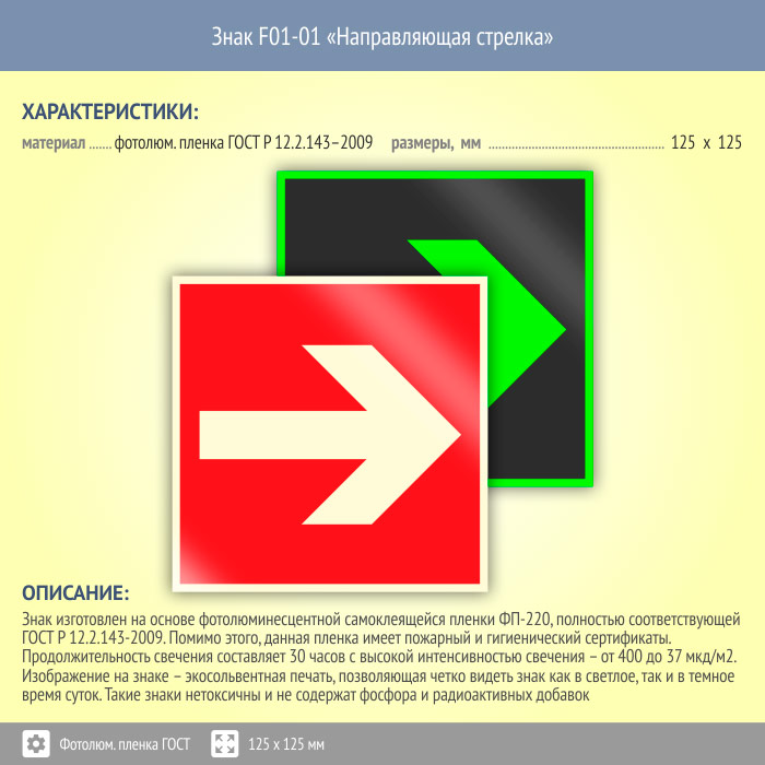 Знак F01-01 «Направляющая стрелка» (фотолюминесцентная пленка ГОСТ 34428-2018, 125х125 мм) в Краснодаре купить